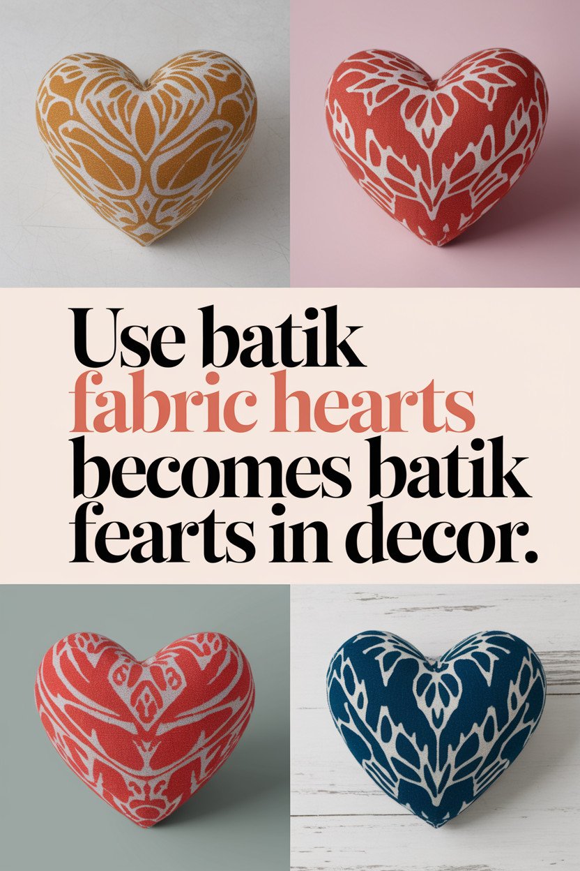 One of the most charming ways to use batik fabric hearts is by turning them into wall art. Imagine a lovely gallery wall filled with these vibrant hearts in different sizes and colors. You can frame them in simple wooden frames or hang them without frames for a more casual look. This creates a beautiful focal point in any room, making your space feel more inviting and personal.