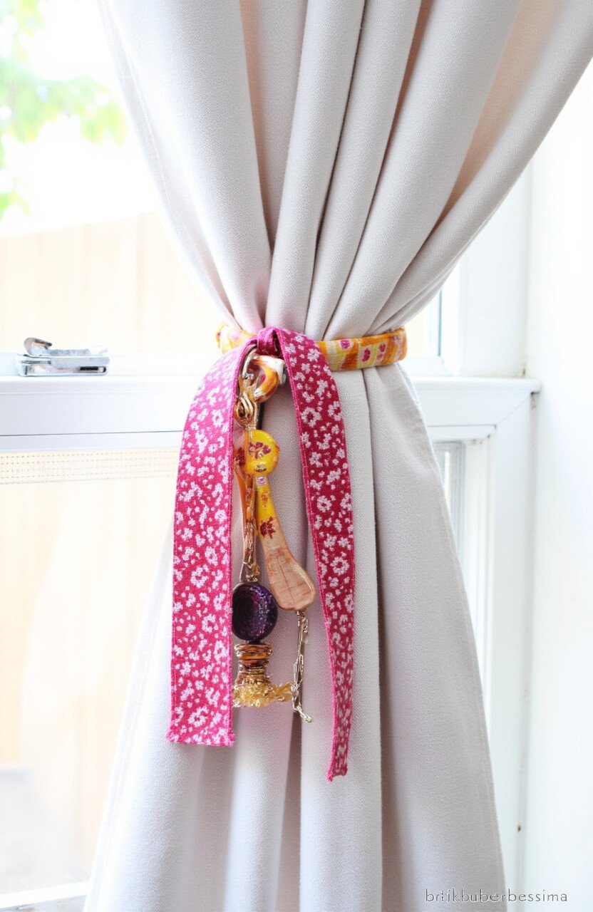 Batik trims can turn plain curtain ties into something extraordinary. Just wrap them around for a splash of color.