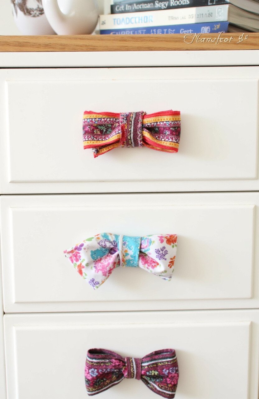 Wrap batik trims around drawer pulls for a chic look. They add a pop of color to any room.