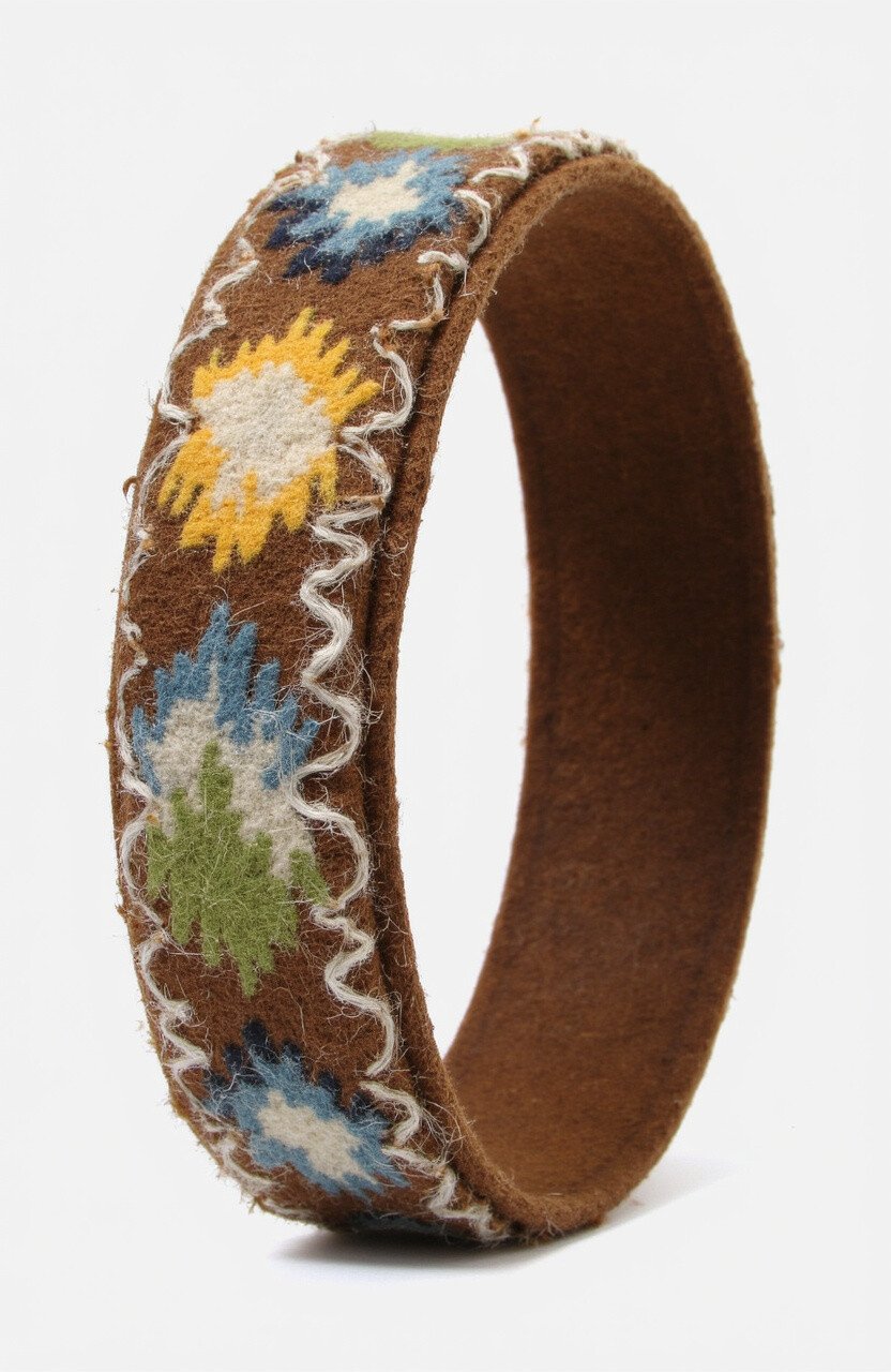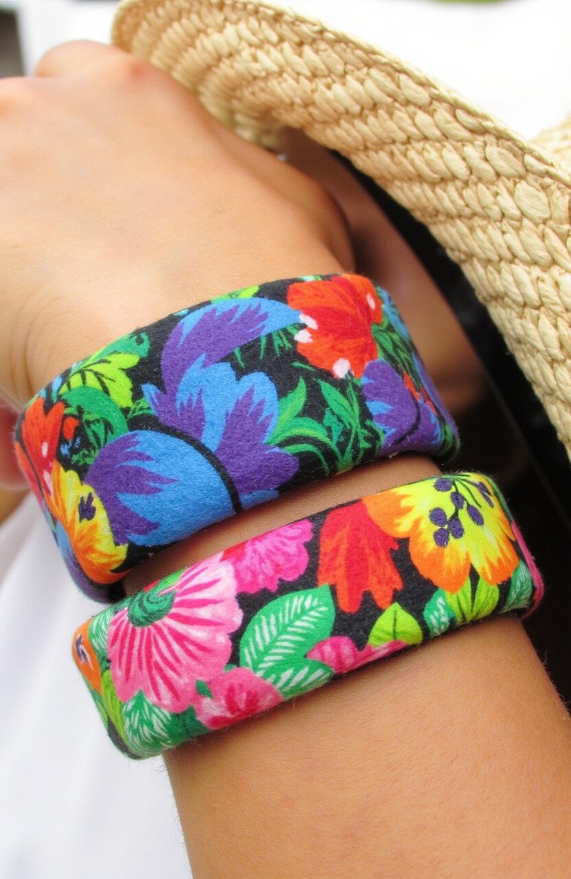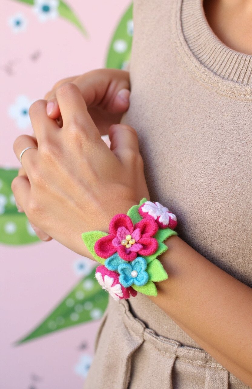 Imagine a garden blooming on your wrist! This batik felt band brings vibrant flowers to life with every glance.