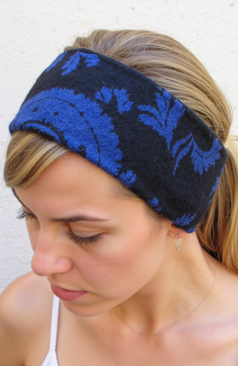 Feel the calming influence of the ocean with this wave-inspired batik felt band. The blues and whites mimic the sea’s ebb and flow.