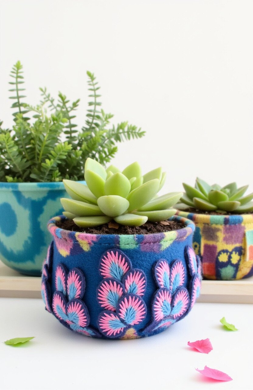 Create them in different sizes to fit various pots. Felt is breathable, making it a great material for plant holders. It’s a creative and low-cost way to enhance your indoor garden with a touch of art.