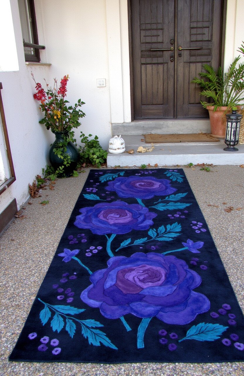 This mat offers a mysterious and enchanting look. Dark blues and purples with hints of floral patterns make it irresistible.