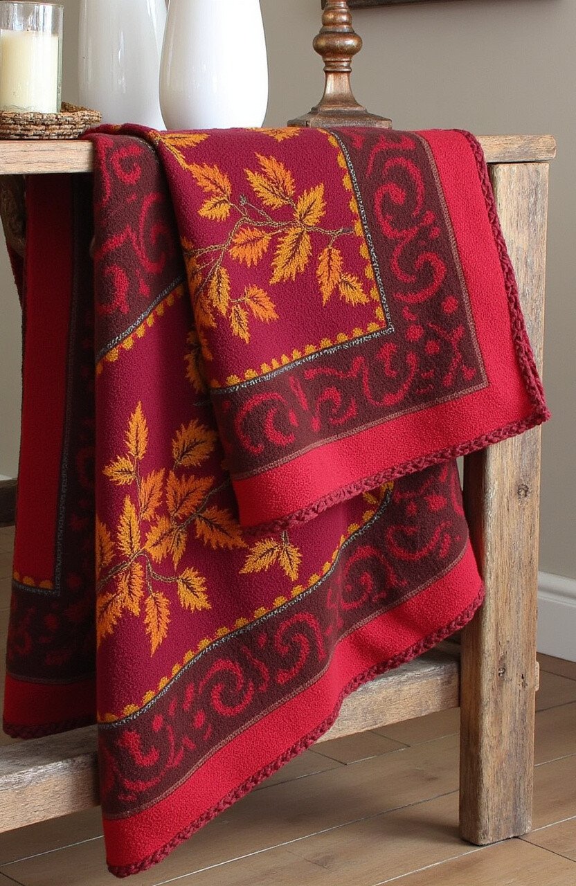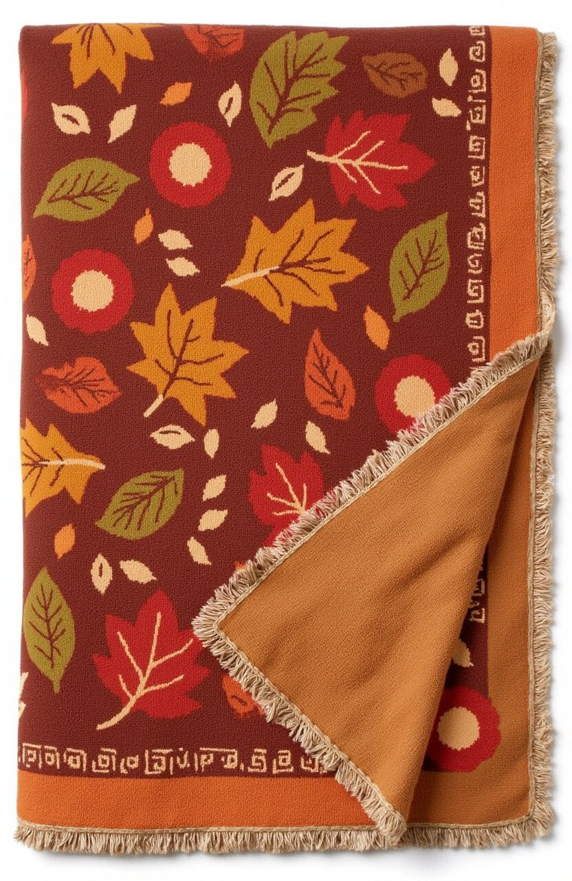 This throw features earthy tones and intricate leaf patterns, like walking through a serene forest. It’s perfect for nature lovers.