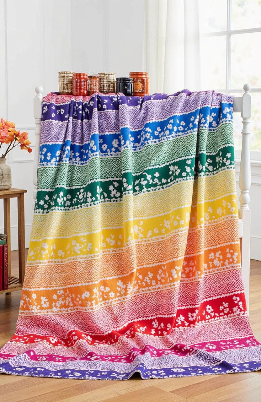 Available for $65, the Festival of Colors throw is a joyful addition that brightens any space.