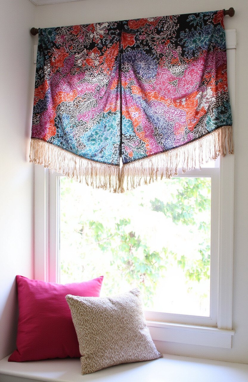 Get creative and use your batik fringe blanket as a curtain. Hang it over a window for a unique and bohemian look.