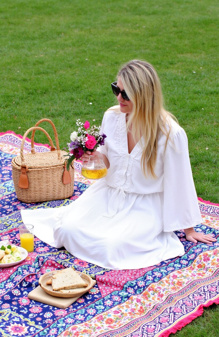 The vibrant patterns will make your picnic setup look inviting and cheerful. Plus, it’s a great conversation starter as you enjoy your meal in style.