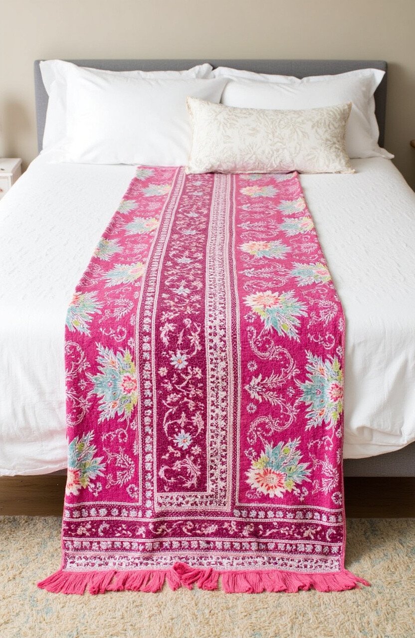 Add a touch of elegance to your bedroom with a batik fringe bed runner. Place it at the foot of your bed for an instant style upgrade.