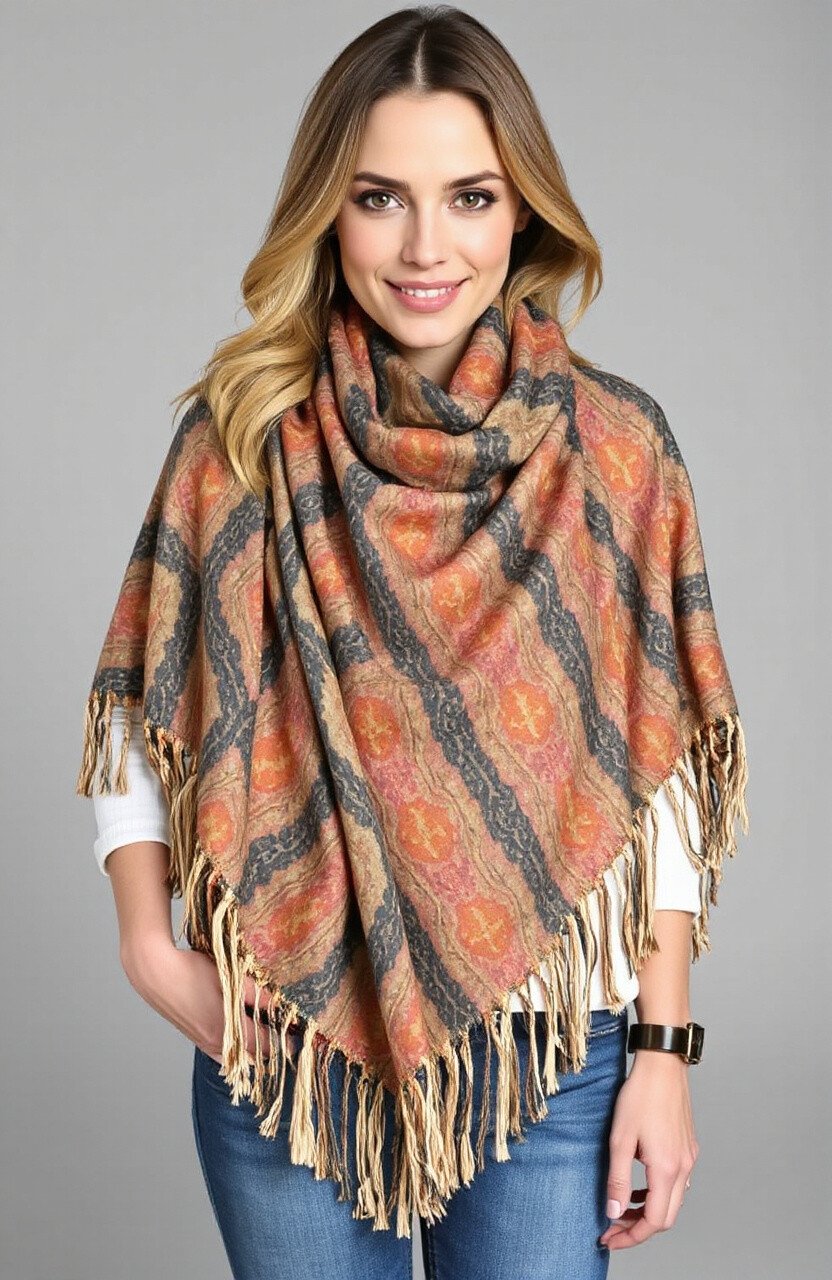 Wrap it around your shoulders for warmth and elegance. The fringe adds fun movement, enhancing any outfit.