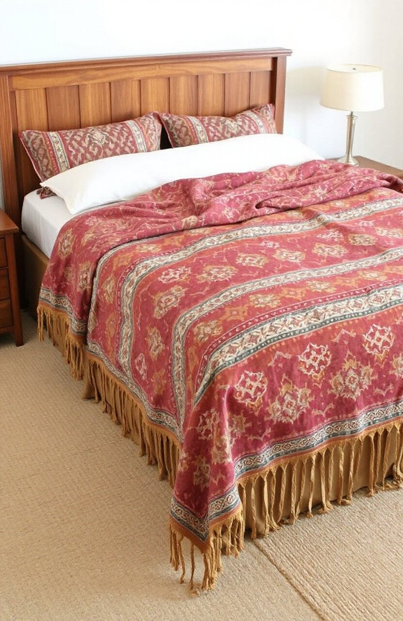 A batik fringe cover can be a delightful bedspread, adding a bohemian flair to your bedroom. The intricate patterns create a focal point, making your bed the star of the room.