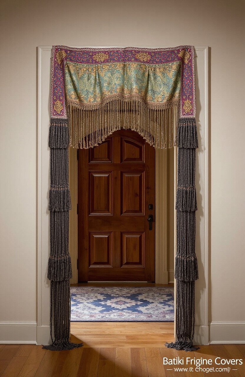 Frame a doorway with a batik fringe cover for a dramatic effect. Its patterns and colors draw attention and enhance your decor.
