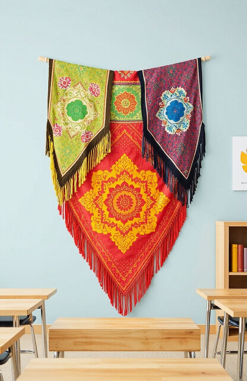 Use batik fringe covers in a classroom to introduce culture and color. Their designs create a vibrant learning environment.