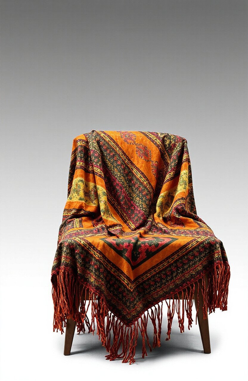 Imagine snuggling on a couch with a batik fringe cover draped over the back. This setup is perfect for adding a pop of color to a neutral sofa. It keeps you warm and gives the room a cozy, inviting look.