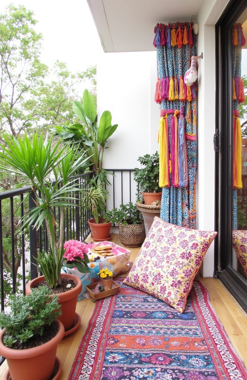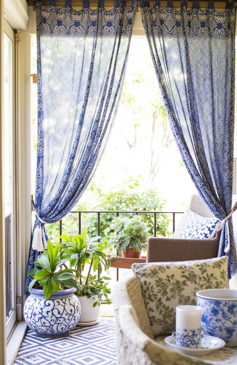 Transform your balcony into a modern boho retreat with batik fringe curtains. Their colorful patterns create a cozy outdoor living area. Pair them with potted plants and comfy cushions.