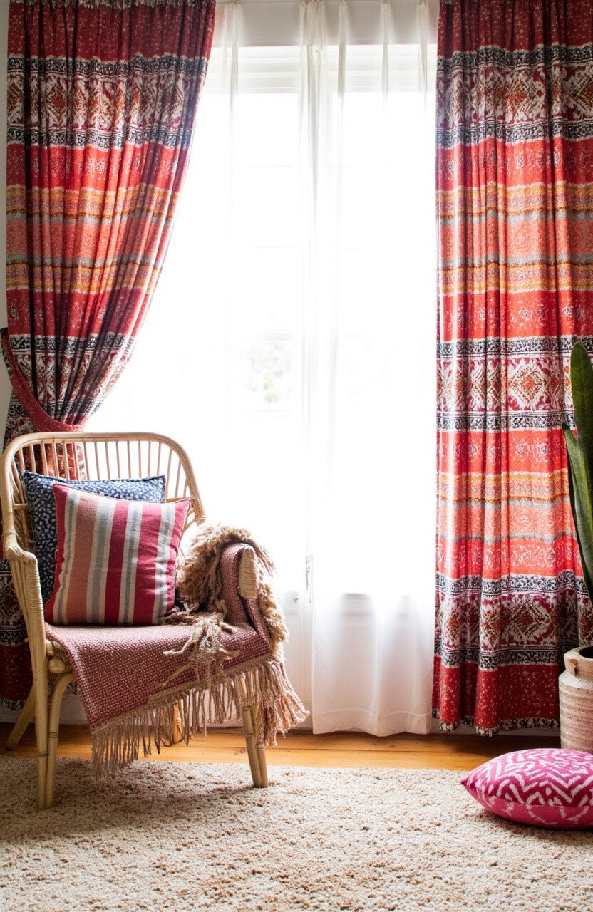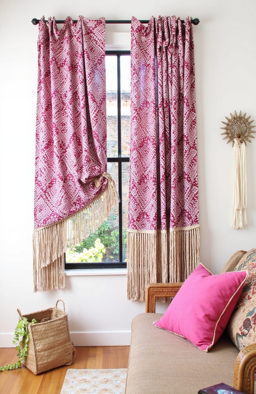 Create a bohemian haven in your bedroom with batik fringe curtains. Their intricate patterns and flowing fringes add a relaxed vibe. Pair them with earthy tones and textured rugs for a complete boho look.
