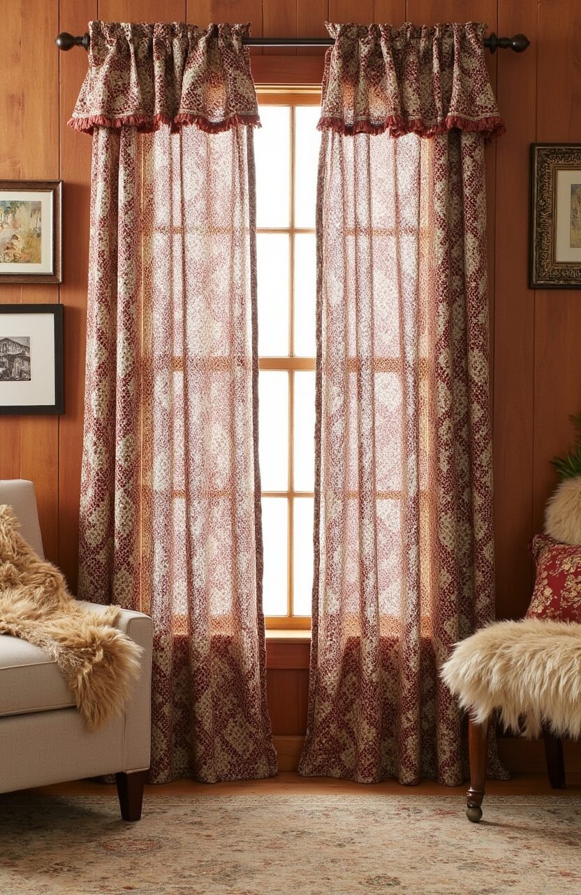 Bring a rustic cabin vibe to your home with batik fringe curtains. Their earthy colors and natural textures create a cozy atmosphere. Pair with wooden furniture and fur throws.