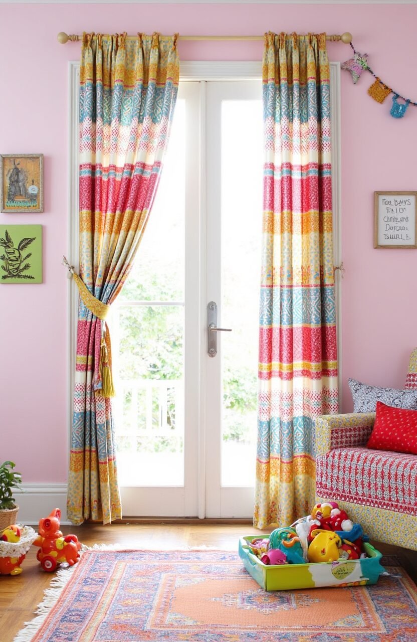 Decorate a nursery with enchanting batik fringe curtains. Their gentle colors and patterns create a soothing environment. Pair with soft toys and pastel bedding.