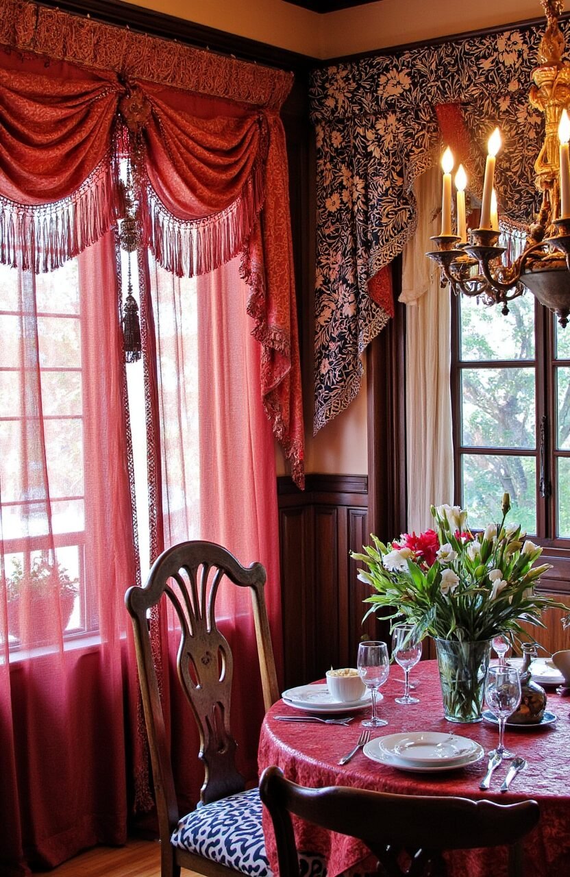 Create an exotic dining experience with batik fringe curtains. Choose rich, deep colors for a luxurious feel. They add an element of surprise and sophistication to your dining decor.