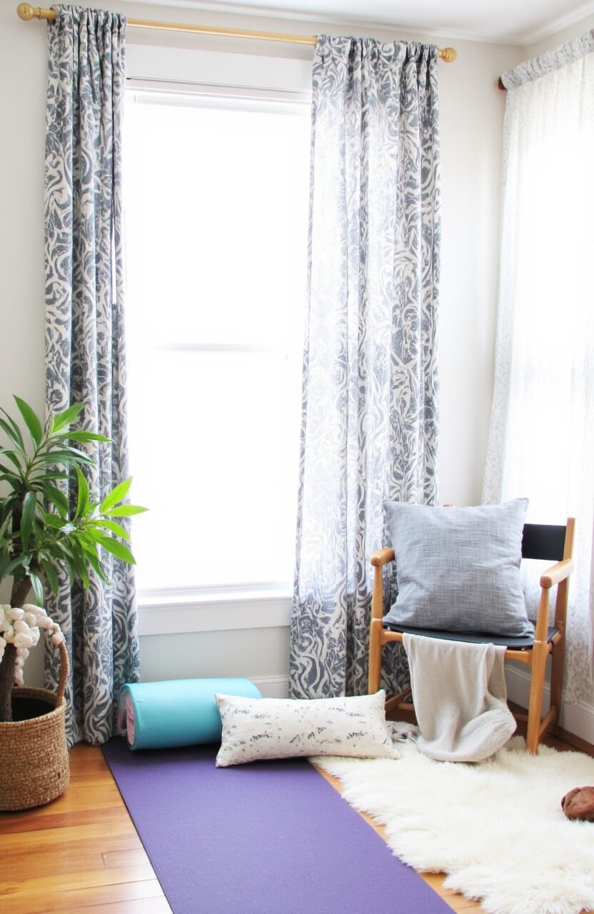 Create a serene meditation corner with batik fringe curtains. Their calming colors and soft textures enhance relaxation. Add a yoga mat and pillows for comfort.