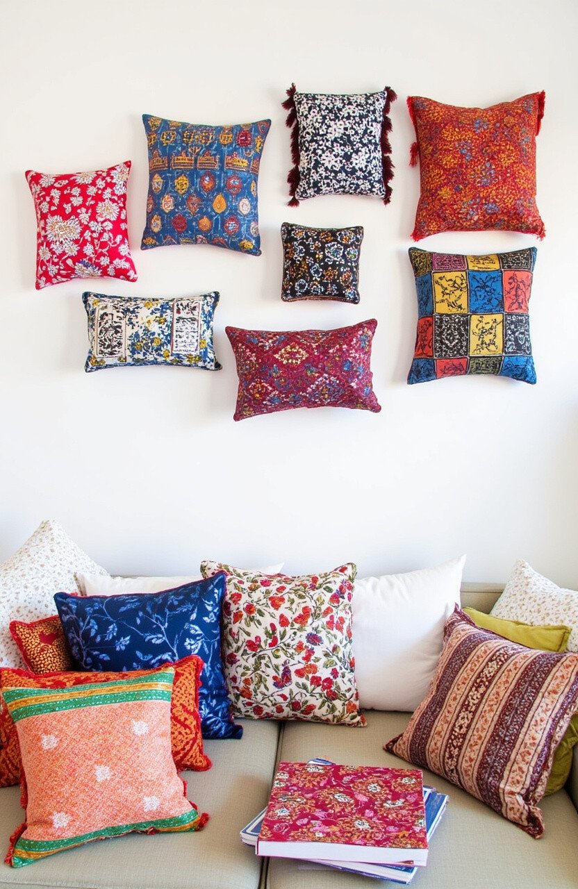 Arrange Batik pillows like pieces of art. Use them to create a gallery wall effect on a couch or bed. Each pillow becomes a masterpiece in your living space.