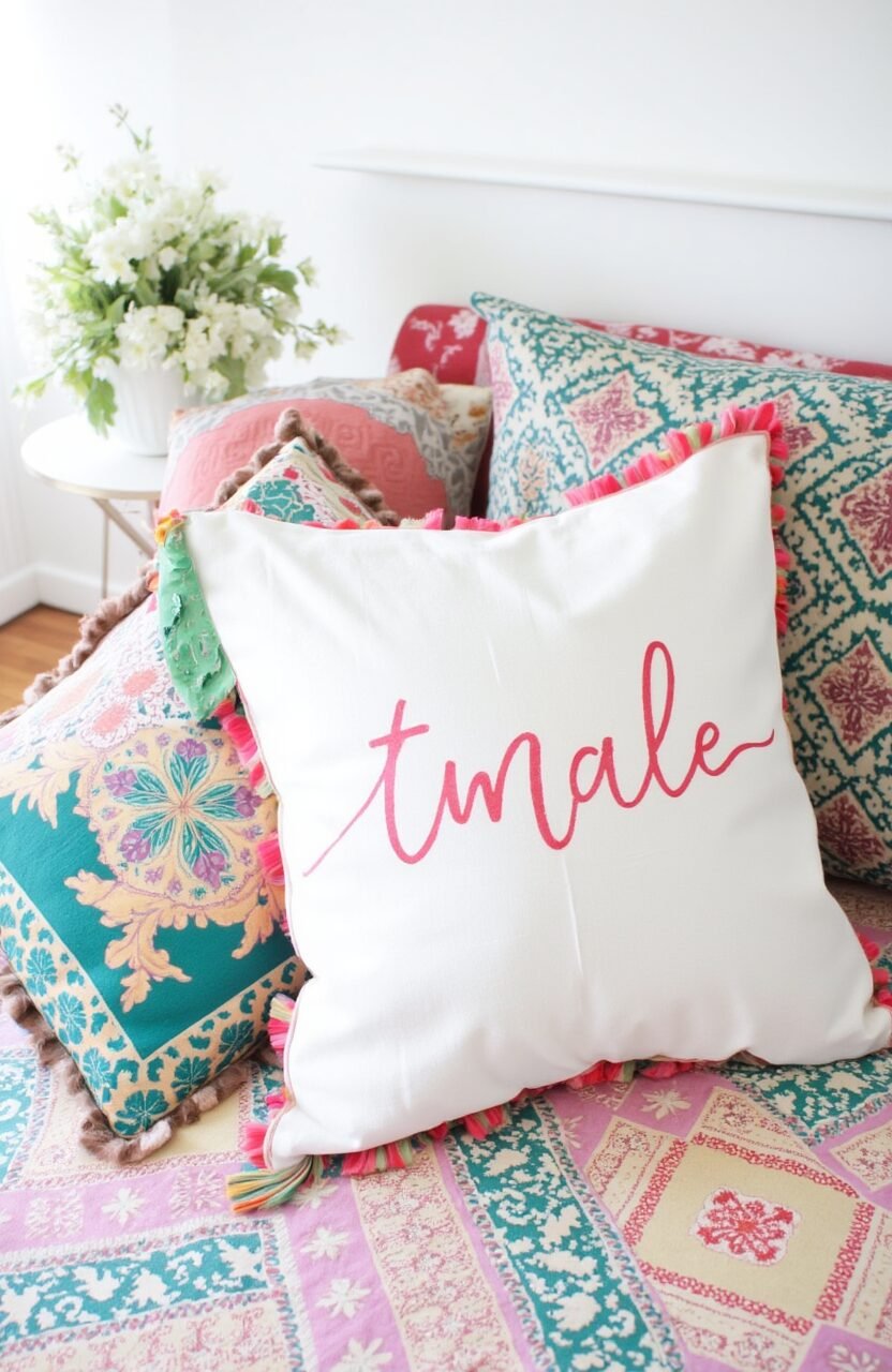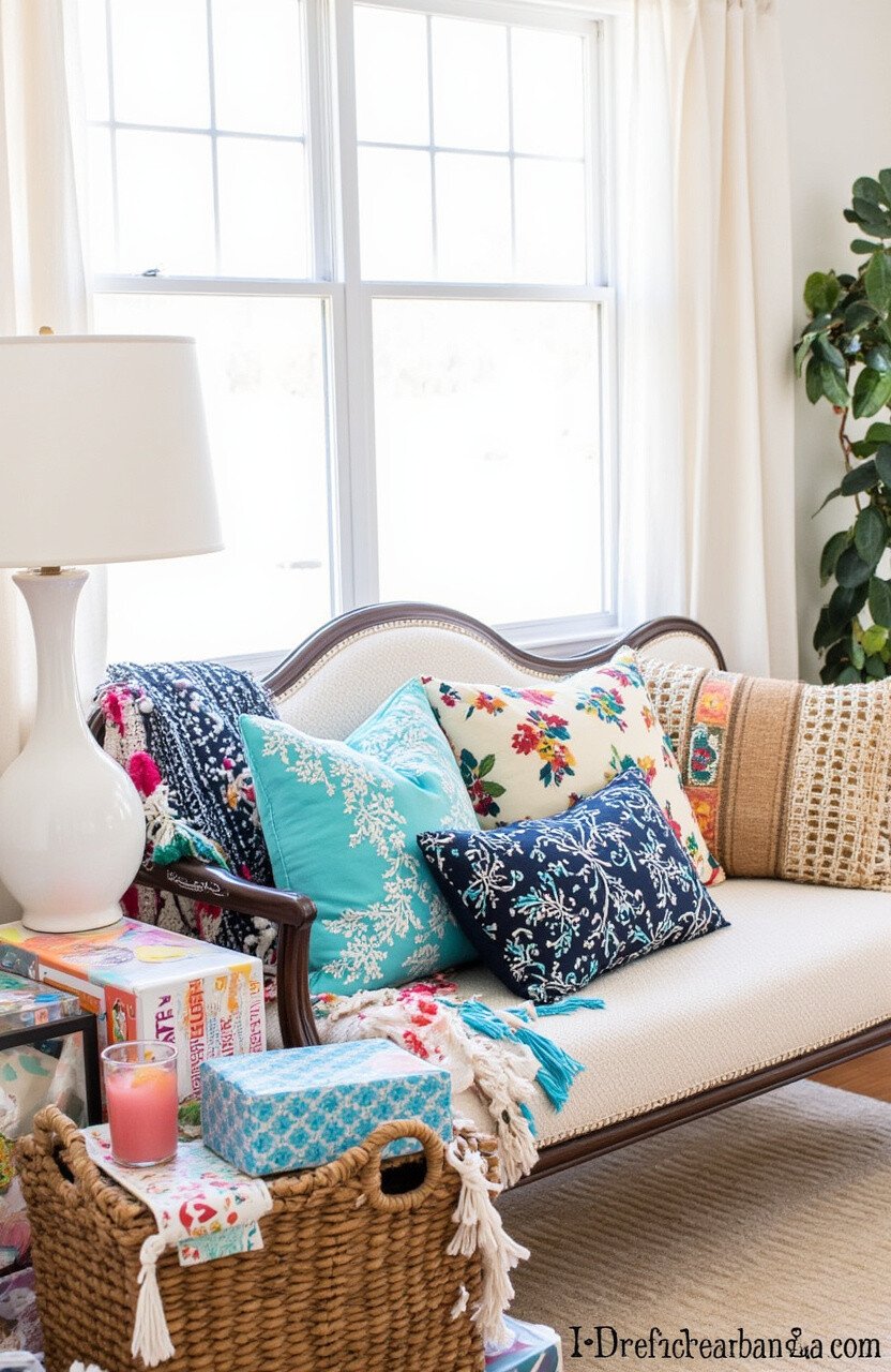 This idea transforms ordinary pillows into extraordinary decor. It’s perfect if you love art and creativity. Plus, it’s an affordable way to personalize your space.