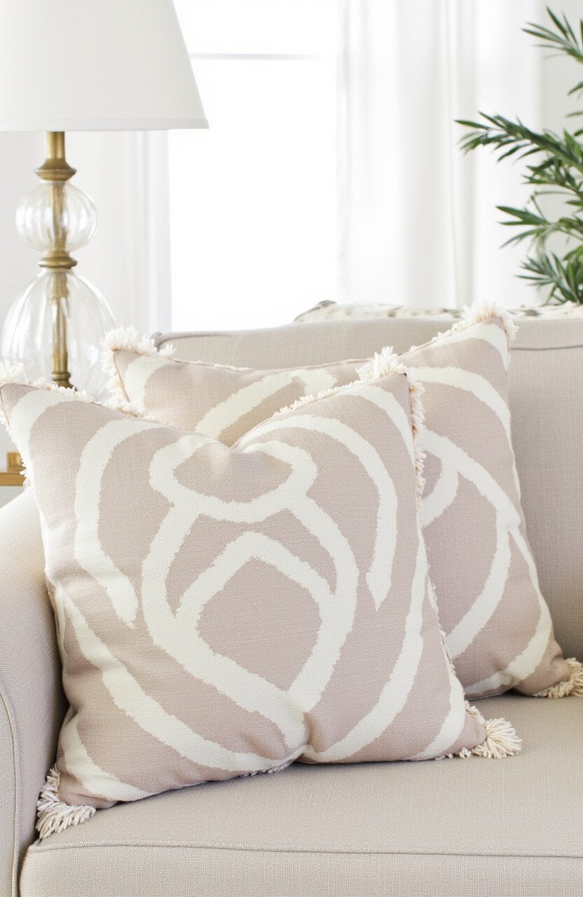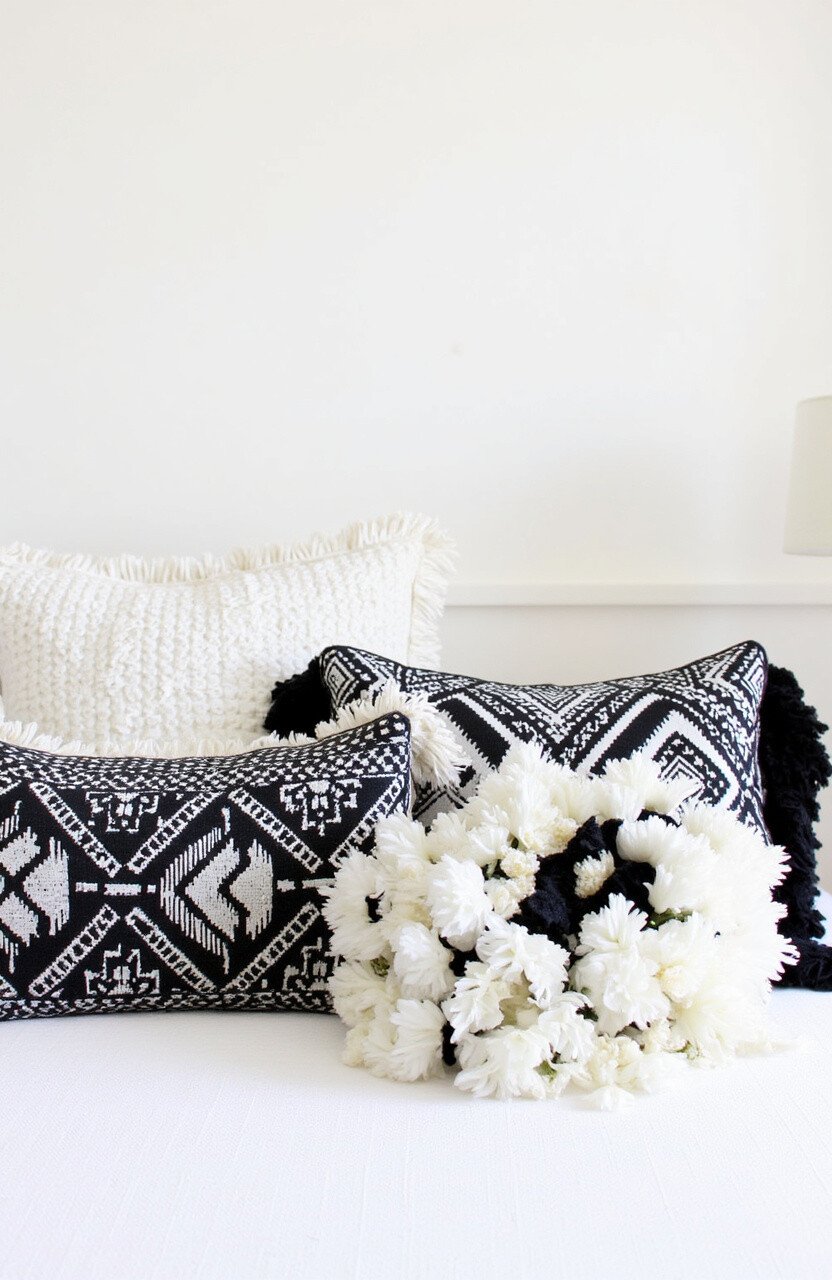 Choose Batik fringe pillows in black and white for a timeless look. They fit perfectly in a modern, chic space. The fringe adds a trendy twist to the classic color scheme.