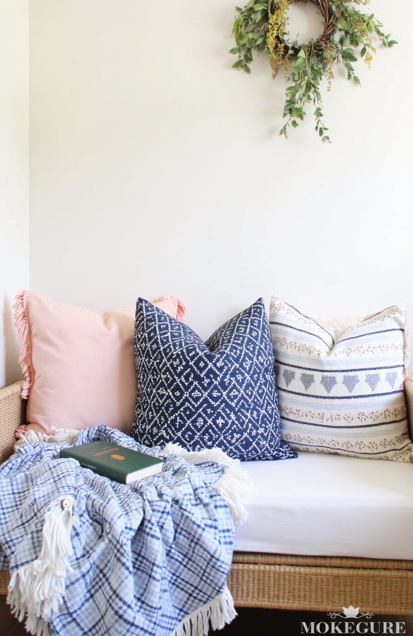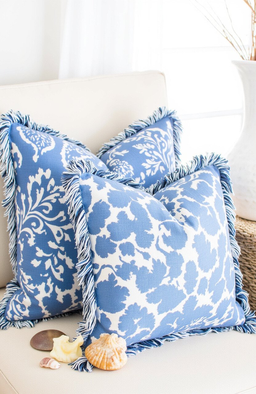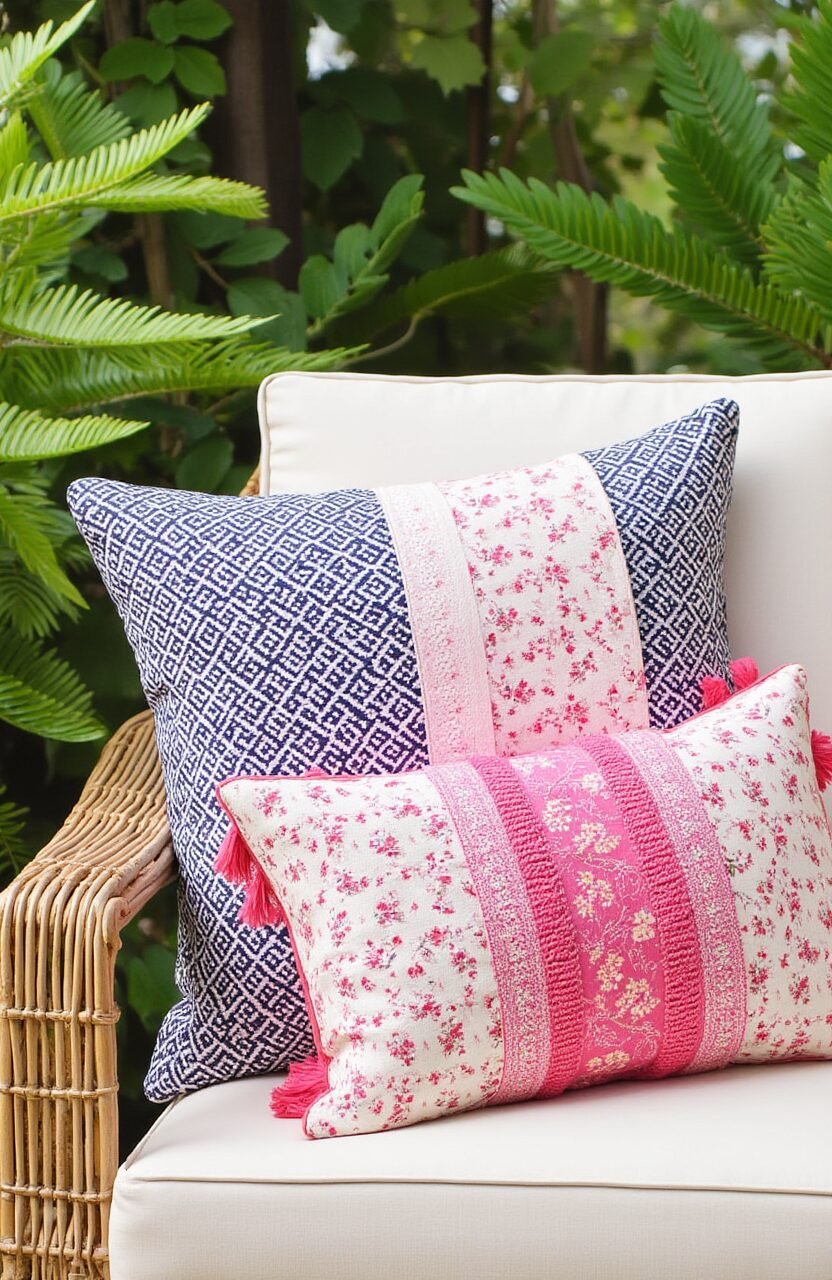 Use blue and white Batik pillows for a coastal feel. Pair them with driftwood and seashells. The fringe mimics ocean waves, adding to the seaside ambiance.