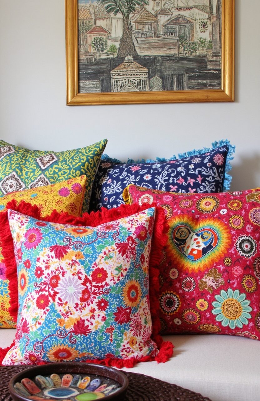 Use Batik pillows to create a travel-inspired space. Pair them with souvenirs from your travels. Each pillow tells a story and takes you on a journey.