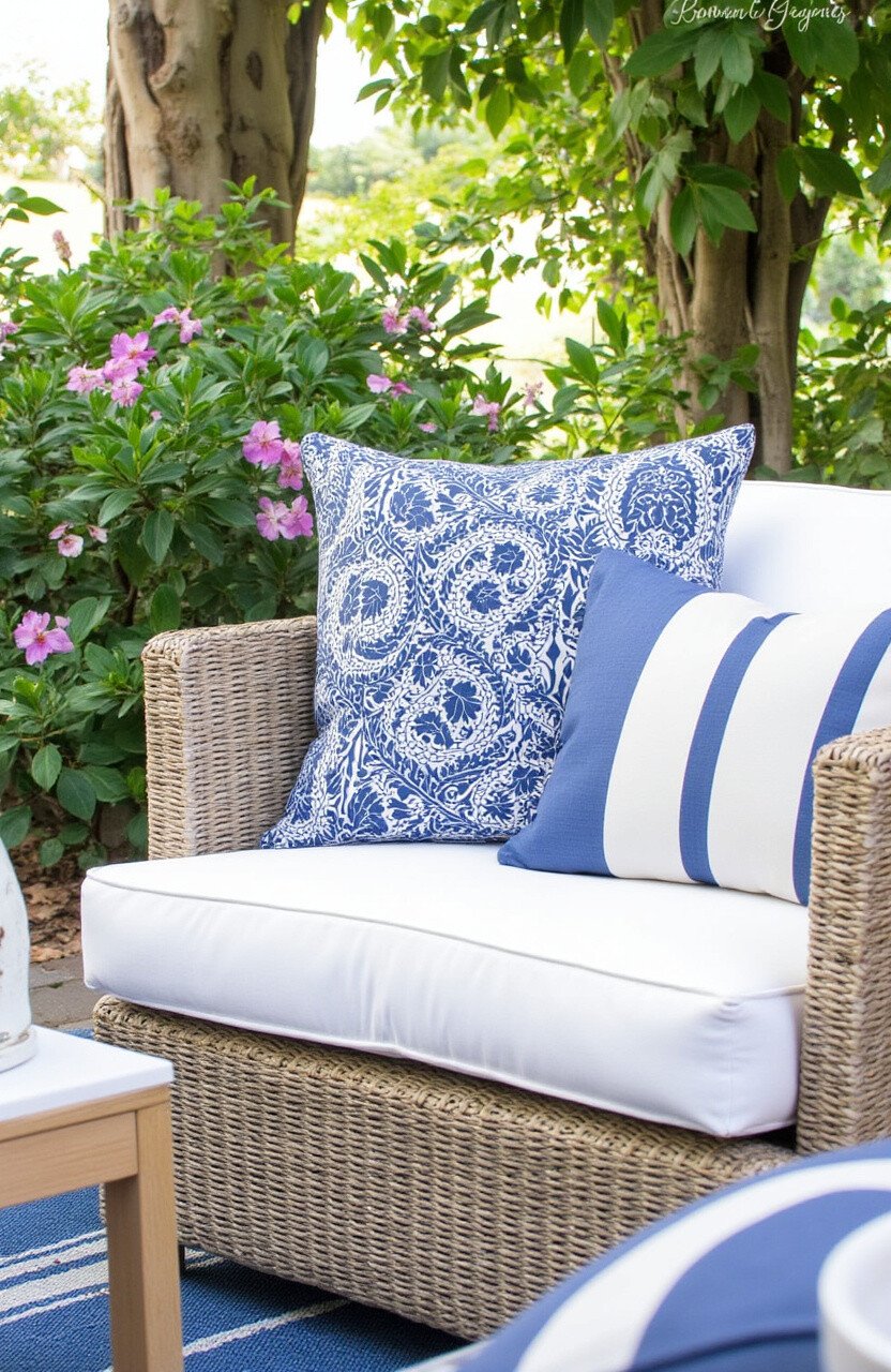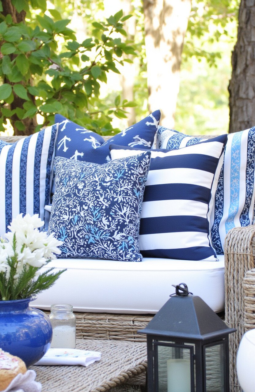 Pair these cushions with navy blue or white furniture for a cohesive look. Add some rope details or lanterns to complete the seaside ambiance. It’s like having a beach getaway in your own backyard.