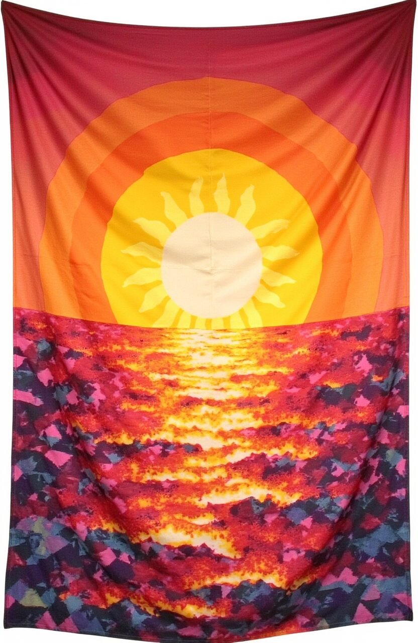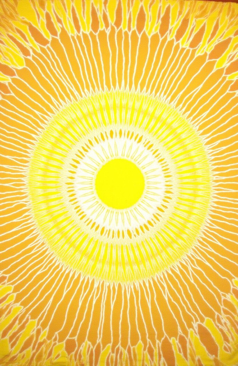 The Golden Sunburst Aura tapestry radiates warmth and positivity. Its bright yellows and golds mimic the sun, bringing light and energy into any room.