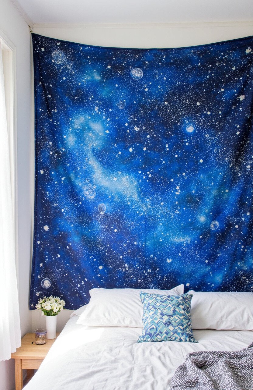 The Ethereal Sky Dream tapestry captures the beauty of a starry night with its deep blues and twinkling white patterns. It’s perfect for creating a dreamy, peaceful ambiance.