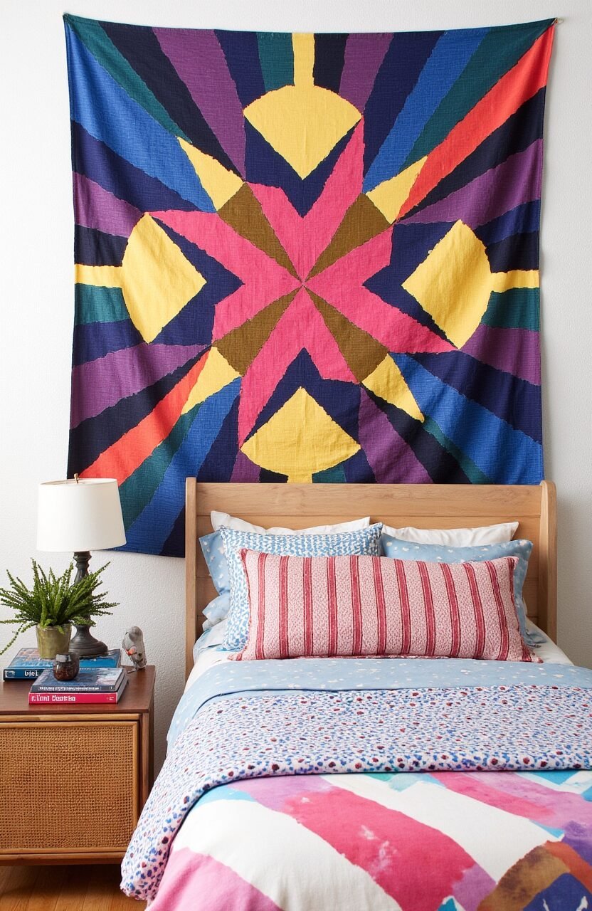 Imagine a tapestry that bursts with energy like a star-filled sky. The Starburst Symphony features bold geometric shapes that radiate from a central point, creating a sense of movement and life. This tapestry can make any wall pop with excitement!