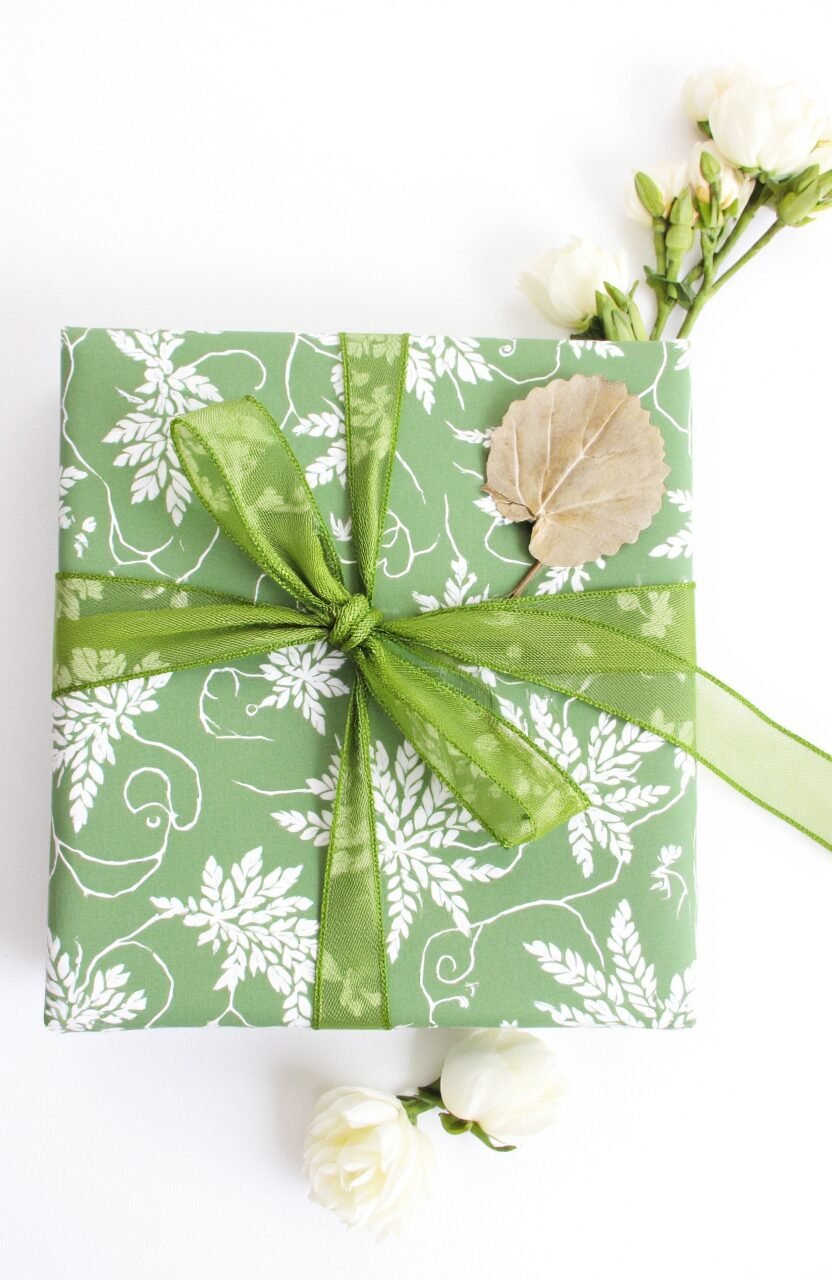 Complement with a green ribbon to enhance the theme. These wraps cost about $9 to $16.