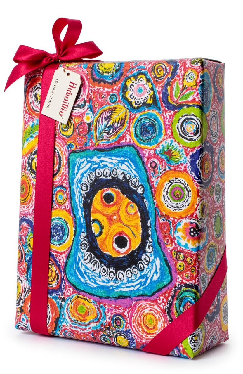 This wrap is ideal for an art lover or someone who appreciates creativity. The abstract designs are both lively and thought-provoking.