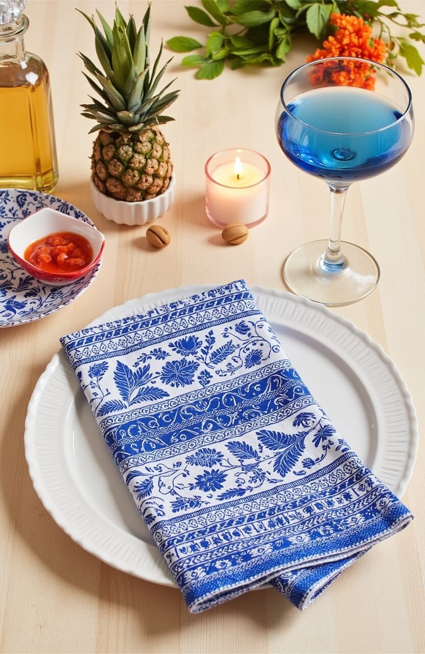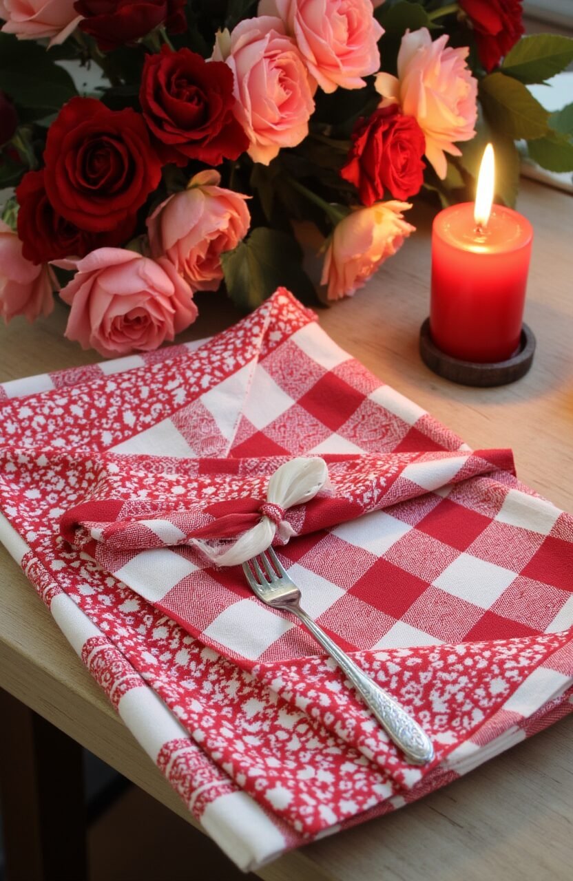 Create a romantic setting with batik gingham napkins. Their intricate designs can set the mood for an intimate dinner.