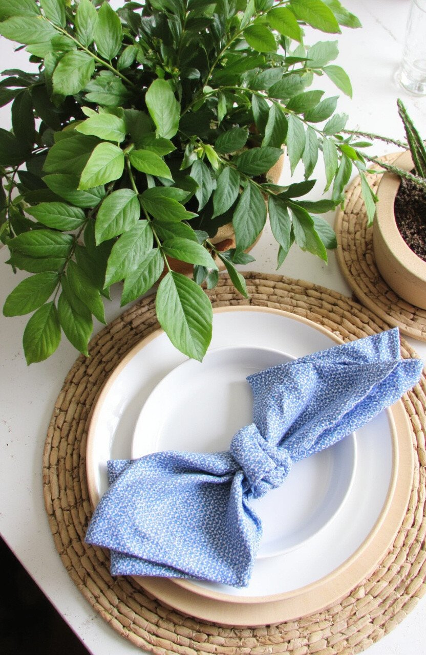 This combination is both modern and chic, adding personality without overwhelming the senses. Personalize with napkin rings in metallic hues for an extra touch of elegance.