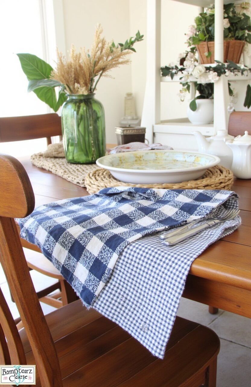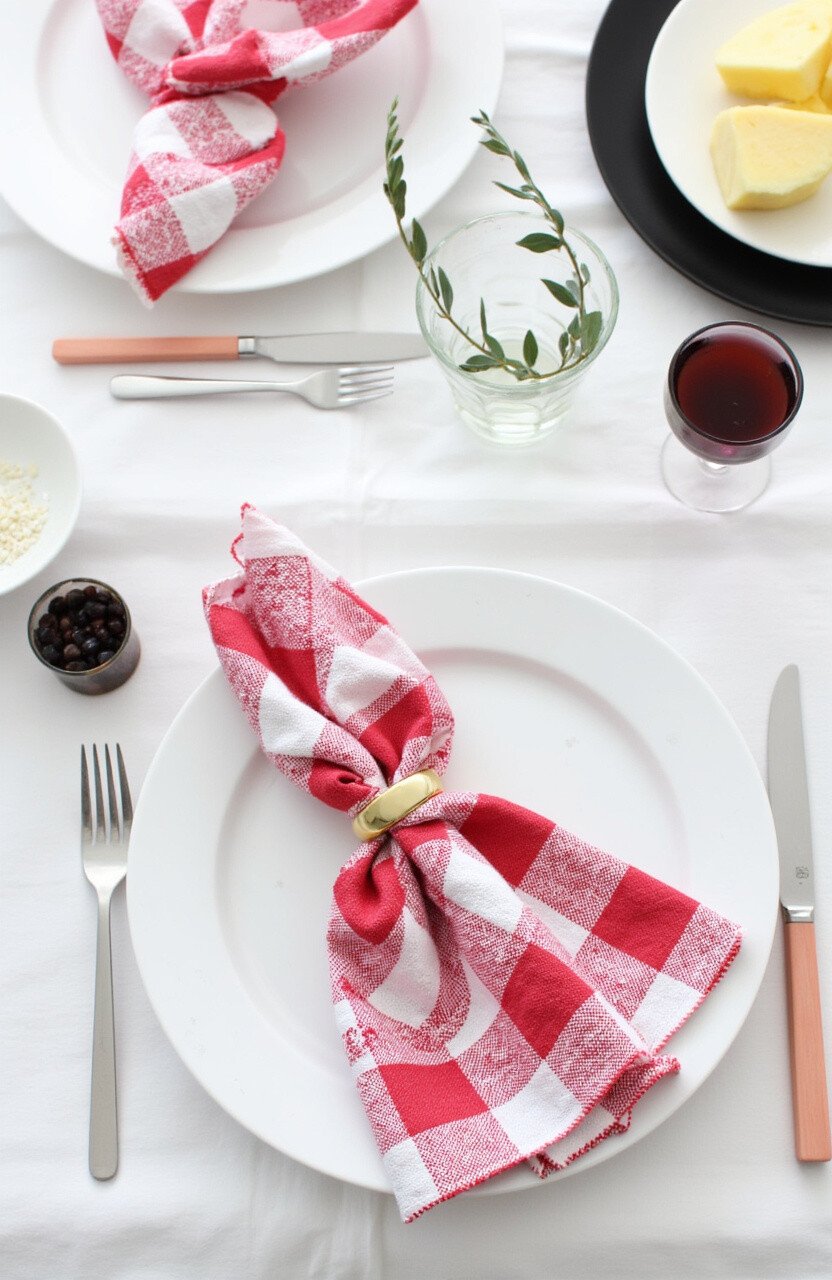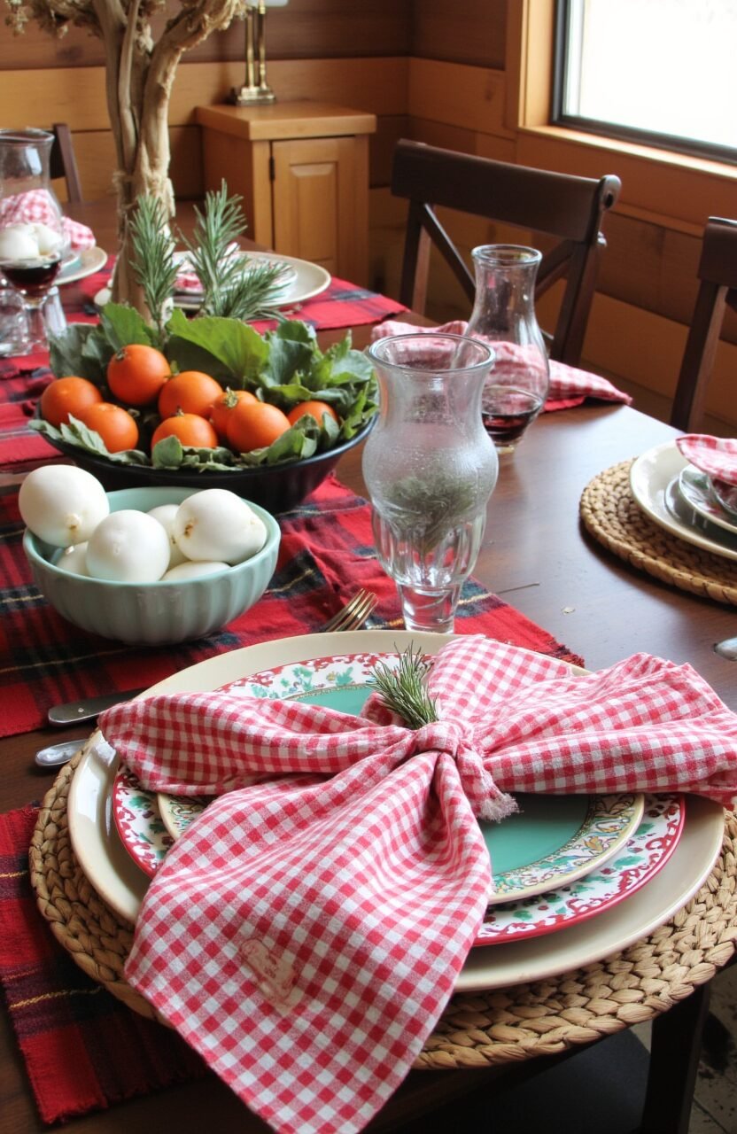 Imagine the charm of a countryside picnic right in your dining room. Pairing batik gingham napkins with wooden tableware creates a rustic vibe that’s warm and inviting.