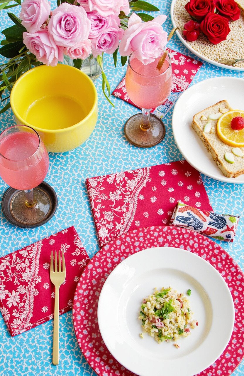 Add some macramé accents and colorful glassware for a setting that’s both whimsical and relaxed. It’s all about creating a space that feels like a personal oasis.
