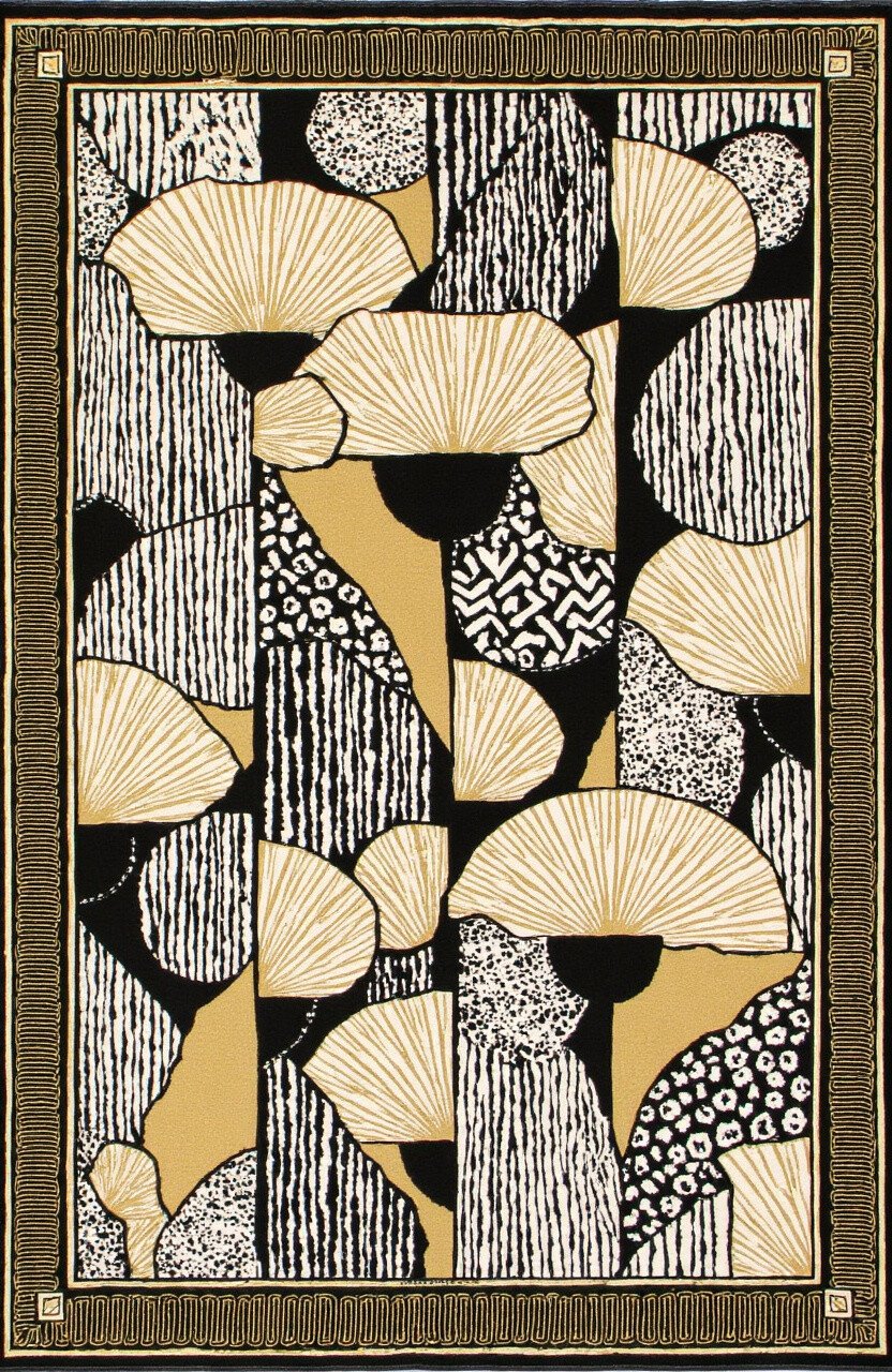 With bold geometric patterns in black, gold, and white, this rug brings the glamour of the Art Deco era to your home. It’s both sophisticated and timeless.