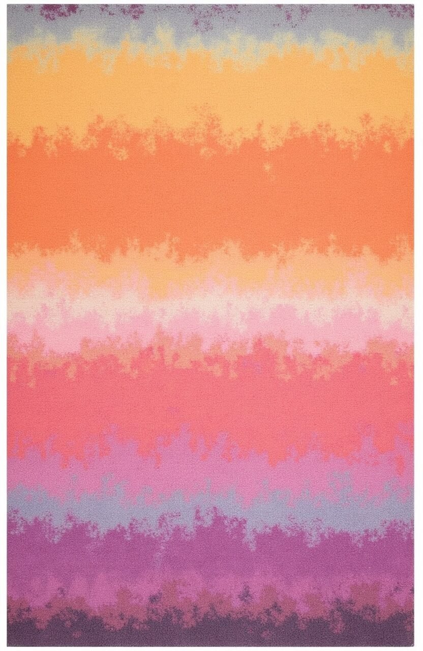 Inspired by the warm hues of a setting sun, this rug features oranges, purples, and pinks. The gradient effect creates a soothing transition of colors, ideal for a cozy reading nook.