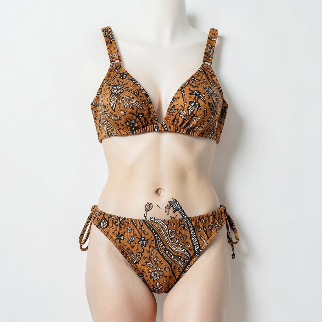 Mix and match different patterns for a unique look. A batik bikini is a stylish addition to any summer wardrobe.