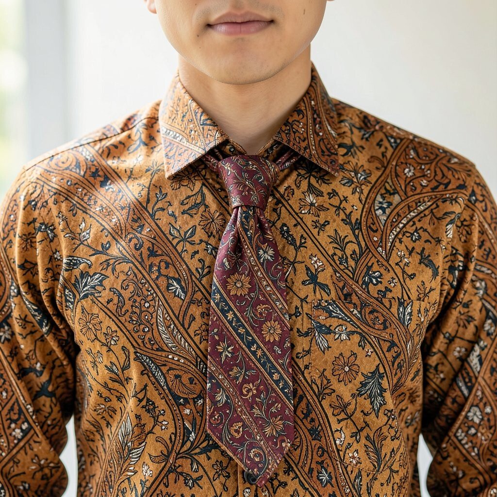 For a subtle touch of batik, try a batik neck tie. It’s perfect for adding a pop of color to a formal outfit. The patterns are intricate and beautiful, making it a standout accessory.