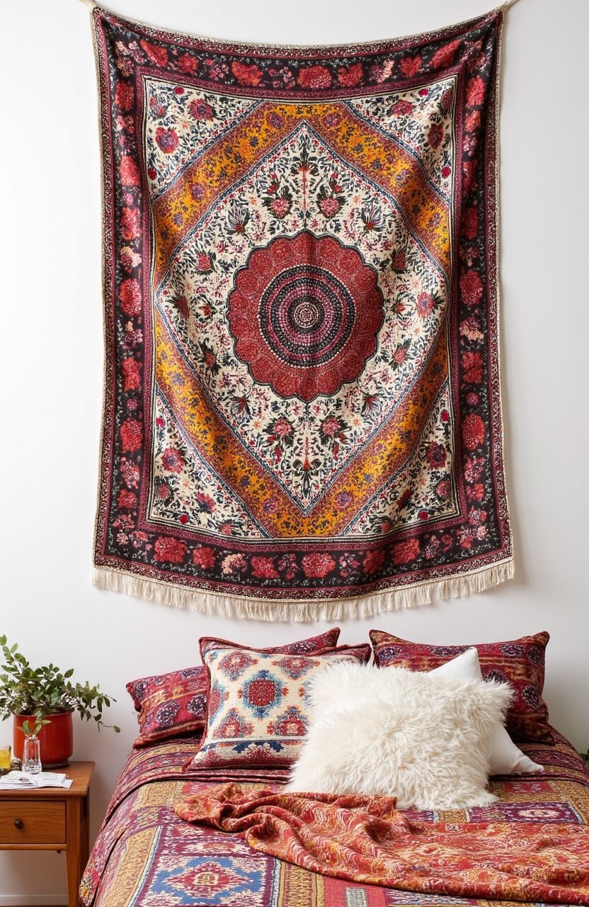 Imagine a tapestry that instantly transports you to a bohemian paradise. The vibrant patterns and earthy tones will make your space feel cozy and inviting. Hang it above your bed or sofa to create a focal point that sparks joy.