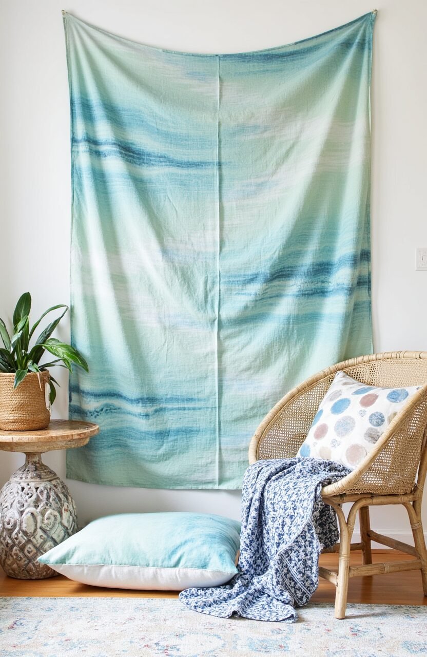 Create a calming nook with a batik jacquard tapestry. The soothing patterns can help focus your mind during meditation or yoga. Drape it on a wall or over a cushion for a peaceful retreat.