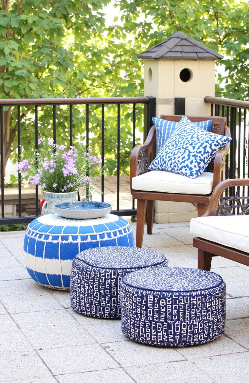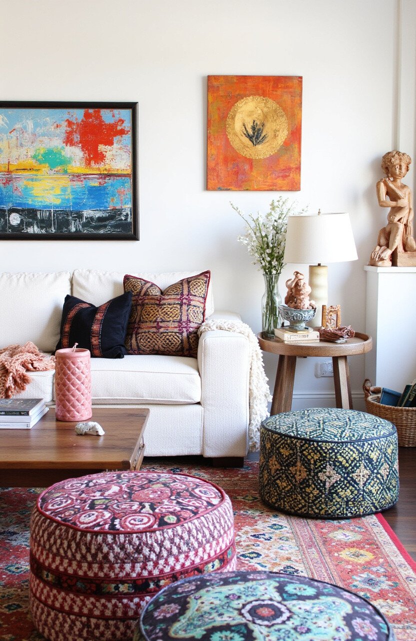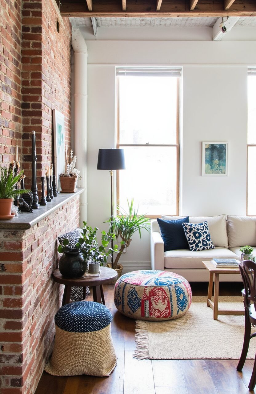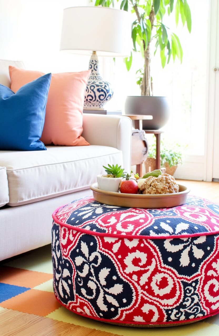 Choose a pouf with a flat top for stability, and place a decorative tray on it for drinks and snacks. This setup encourages a laid-back, inviting atmosphere.