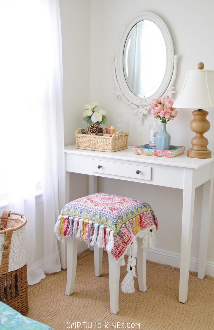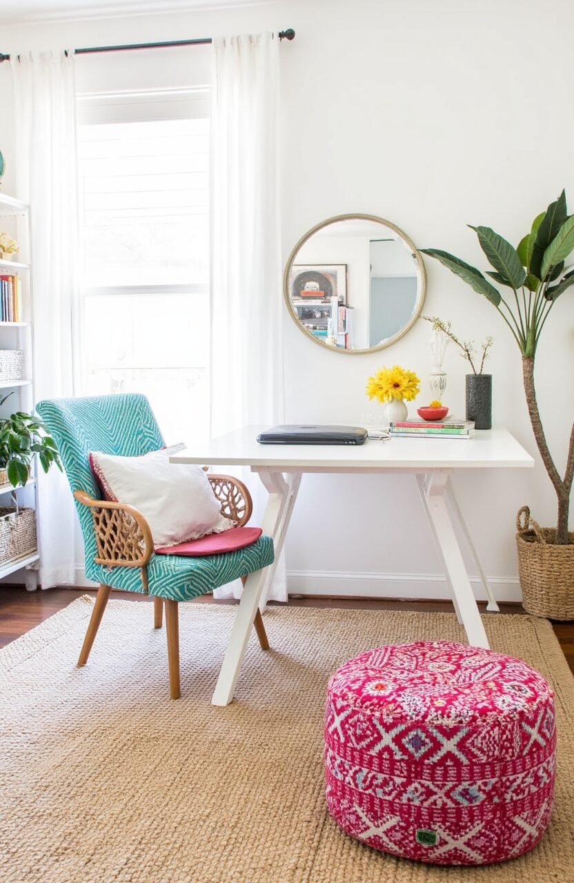 Use a batik jute pouf as a seat for your vanity table. Its height and comfort make it perfect for getting ready in the morning.