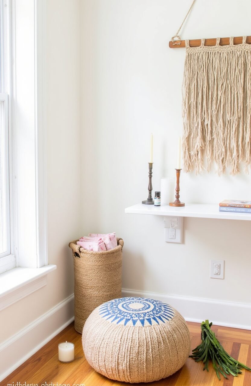 Designate a corner of your home for meditation with a batik jute pouf as the centerpiece. Its natural materials and calming design create an ideal setting for mindfulness.