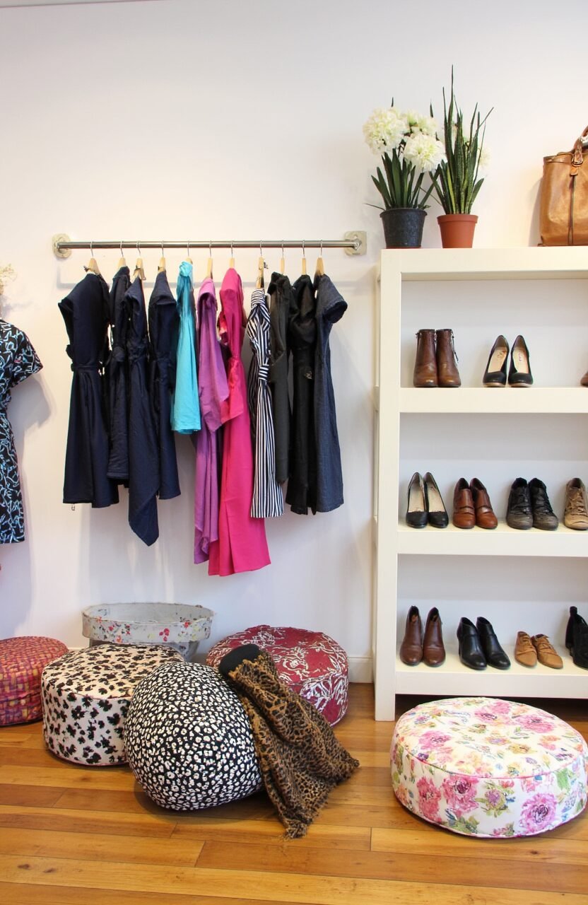 Arrange them beneath hanging garments or beside shoe displays. This creative use of space enhances the shopping experience with style and sophistication.