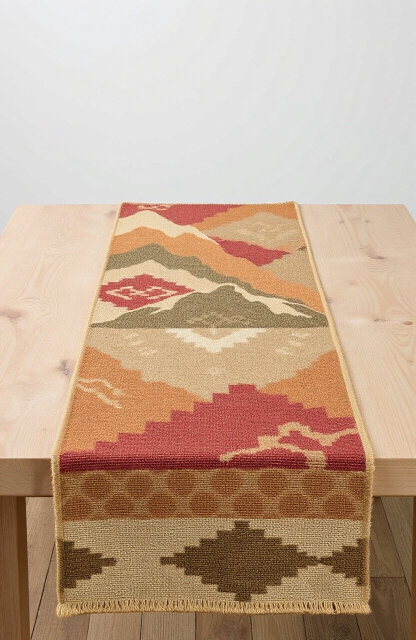 The Majestic Mountains runner features rugged patterns and earthy tones. It’s like a piece of the great outdoors underfoot.