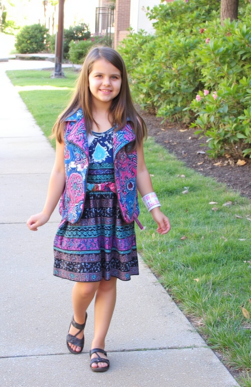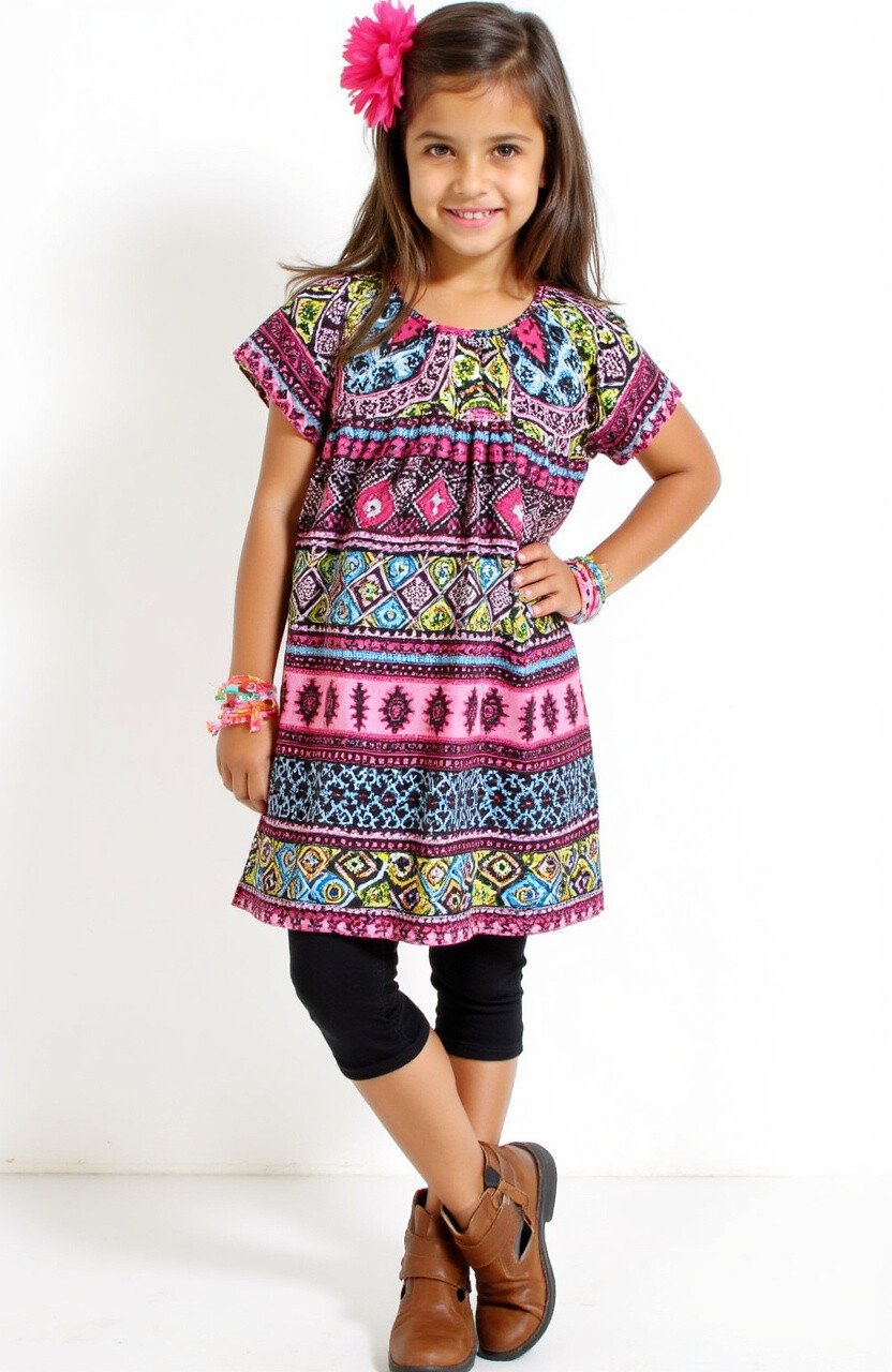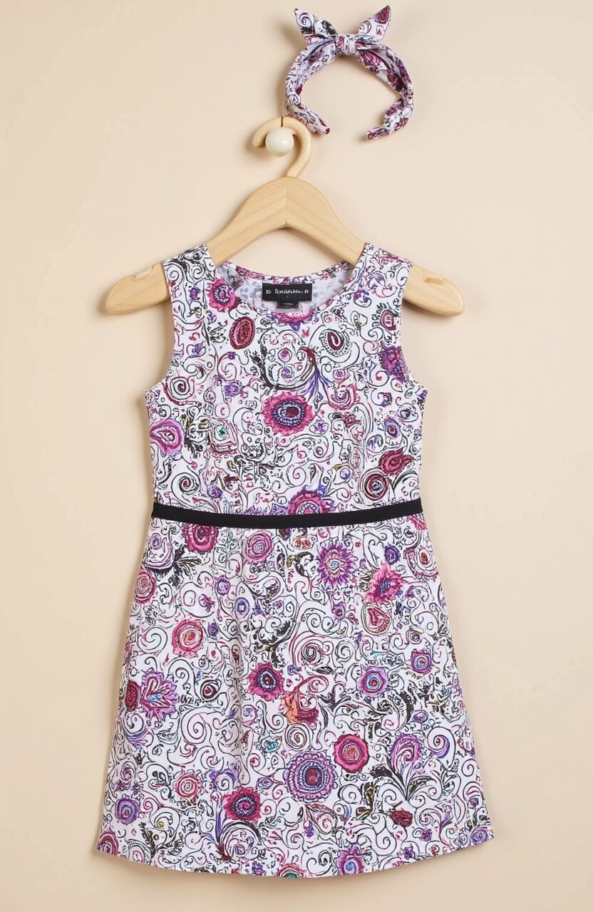 This dress is like stepping into a fairy tale. With swirling patterns and magical colors, it’s perfect for a little princess. The soft fabric makes it comfortable for all-day wear.